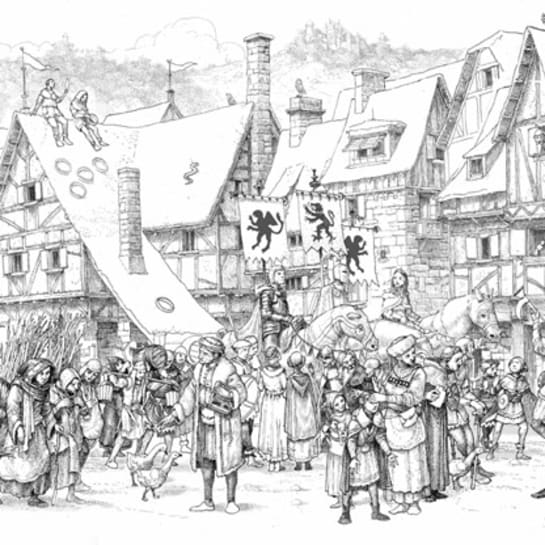 We've updated Levi Pinfold's portfolio, including his lovely Medieval Town panorama image...